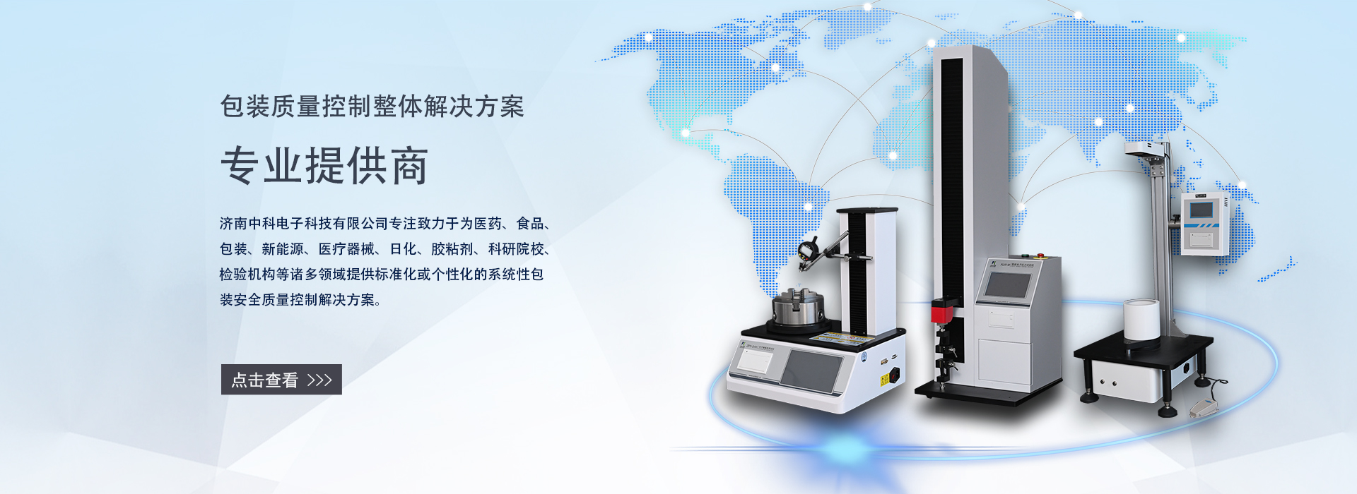 濟(jì)南中科電子科技有限公司是一家集包裝及膜材檢測儀器的研發(fā)、制造、銷售和服務(wù)為一體的專業(yè)科技公司。專注致力于為食品、醫(yī)藥、包裝、新能源、醫(yī)療器械、石化、日化、膠粘劑、科研院校、檢驗機構(gòu)等諸多領(lǐng)域提供標(biāo)準(zhǔn)化或個性化的系統(tǒng)性包裝及膜材質(zhì)量控制解決方案。